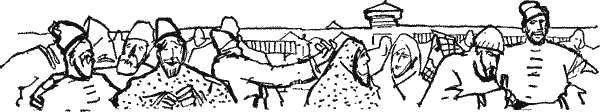 Воевода в новом кафтане, туго опоясанный шелковым кушаком китайского